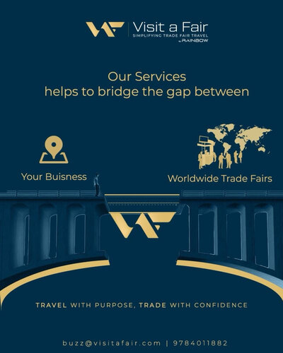 Visit A Fair is a premier brand under Rainbow Travtech Pvt. Ltd., exclusively dedicated to curating and managing international trade fair tours for businesses, industry professionals, and government delegations. With over two decades of experience in the trade fair travel domain, we have built a trusted legacy in enabling global exposure for Indian businesses across sectors. We are driven by the mission to simplify international business travel while adding real value to our clients’ participation in the world’s leading trade exhibitions. From SMEs to major corporate houses and industry associations, Visit A Fair has been the go-to partner for structured, reliable, and professionally managed trade fair tours. .